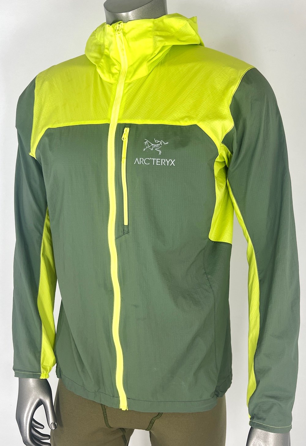 It has elastic cuffs, dual hem adjusters that seal out gusts, and a slightly longer hem in the back. Minimalist design features a No-Slip Zip and a single chest pocket that doubles as a stuff sack that the jacket can pack itself into. At around 140g, it's highly packable and versatile for climbing, hiking, trail running, or urban casual wear. This Arc'teryx jacket is highly wind-resistant and drizzle-repellent, but not fully waterproof; it will get wet in prolonged rain exposure but dries very quickly. Breathability is good, but it can feel clammy in very high-output conditions with only the front zip to vent heat.