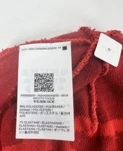 The interior care tags on some fake grotto toques list the wrong model, such as the Fernie toque (left), while the real version is labeled as the Grotto Toque (right). If you see "Fernie" on the care tag, it’s counterfeit.